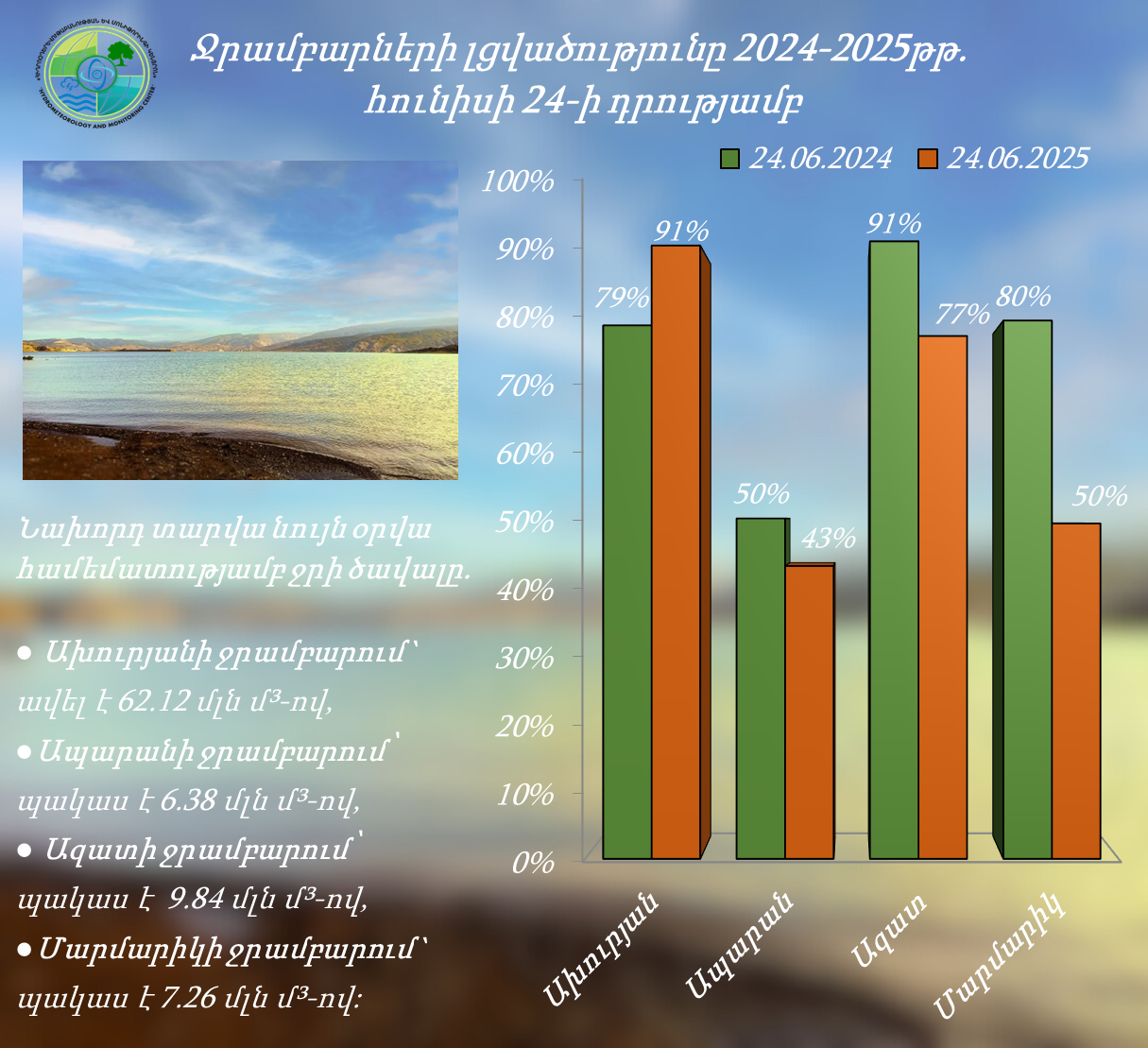Ջրամբարների լցվածությունը հունիսի 24-ի դրությամբ (2025թ.)