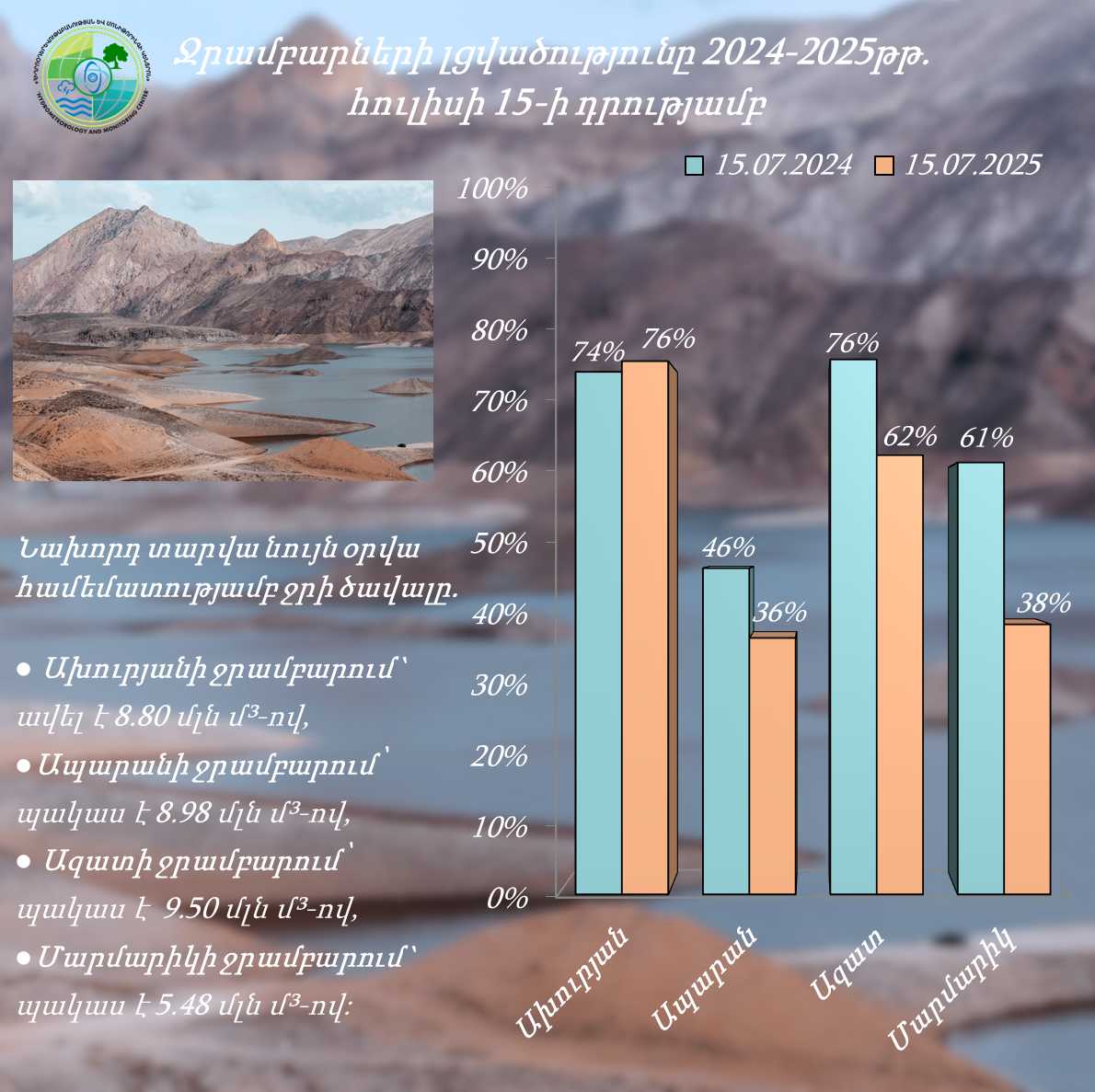 Ջրամբարների լցվածությունը հուլիսի 15-ի դրությամբ (2025թ.)