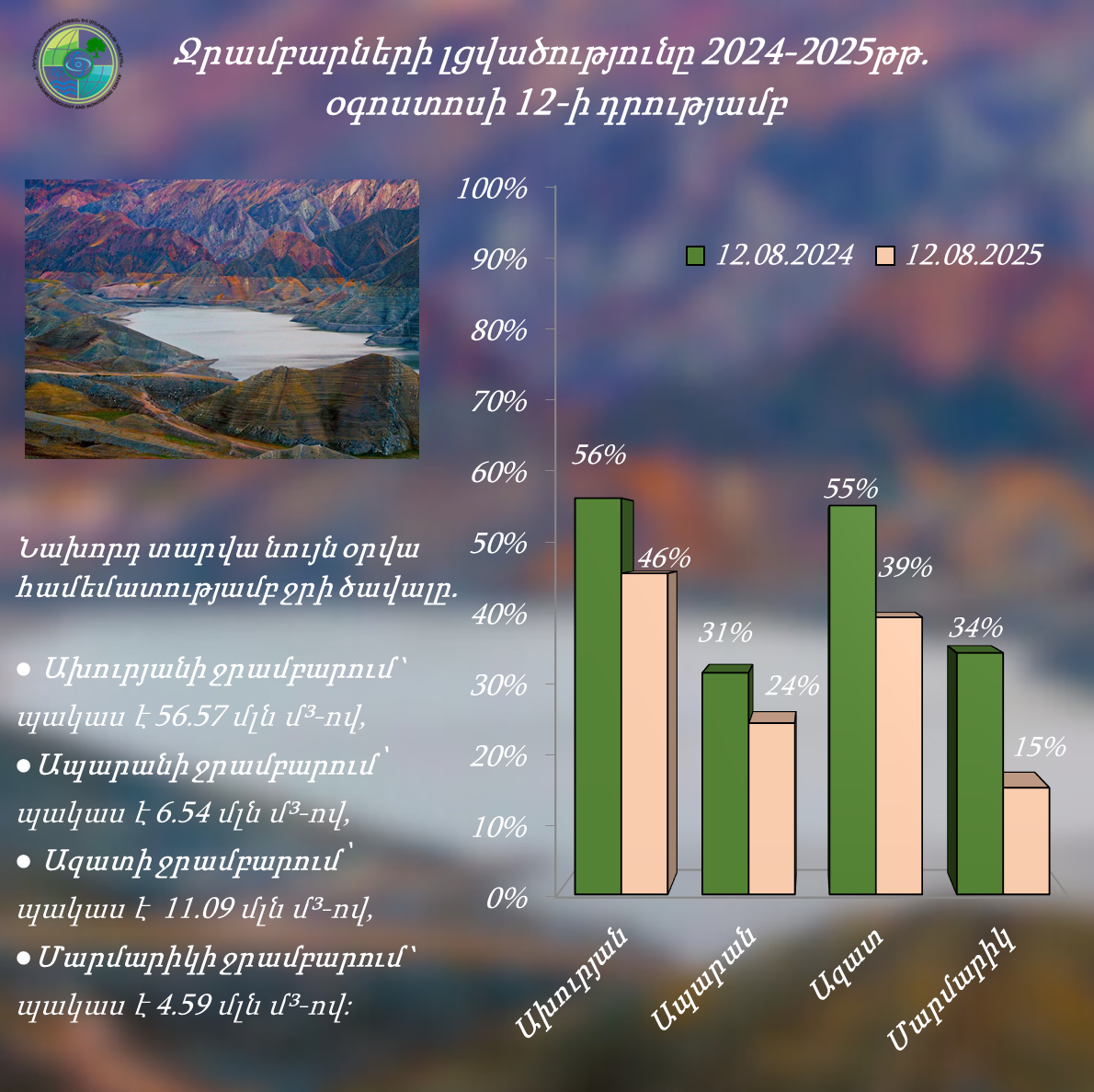 Ջրամբարների լցվածությունը օգոստոսի 12-ի դրությամբ (2025թ.)
