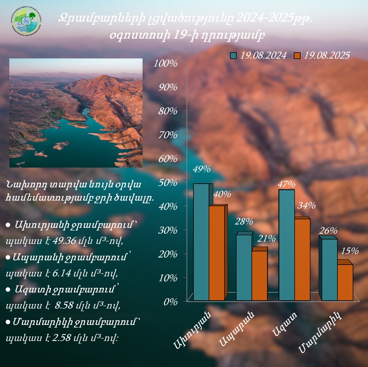 Ջրամբարների լցվածությունը օգոստոսի 19-ի դրությամբ (2025թ.)