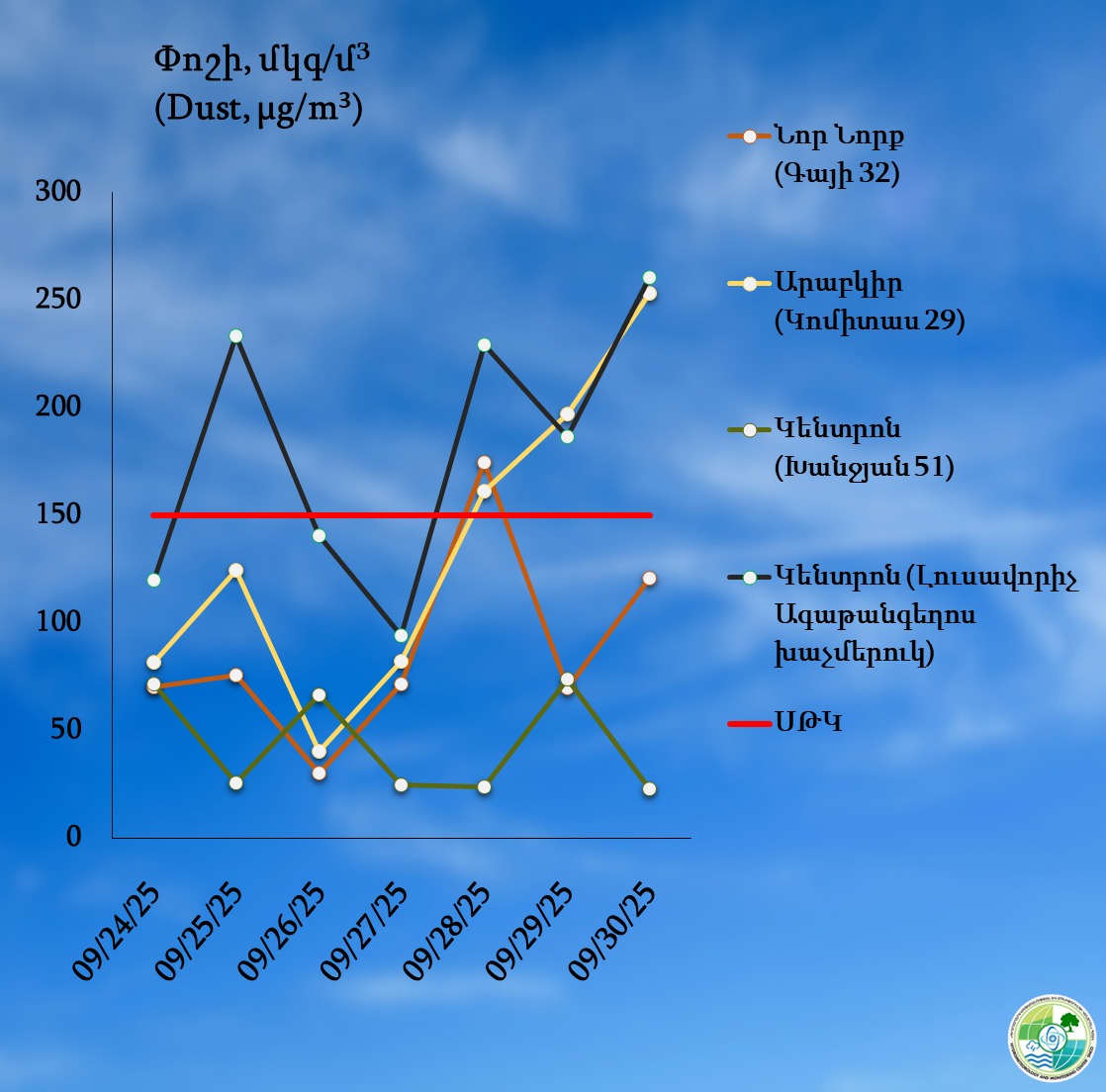 Երևանում մթնոլորտային օդի որակը սեպտեմբերի 24-30-ը (2025թ.)