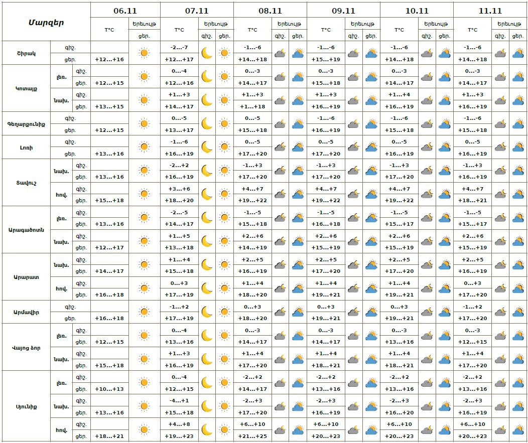 Նոյեմբերի 6-ի ցերեկը, 7-11-ին սպասվում է առանց տեղումների եղանակ։
