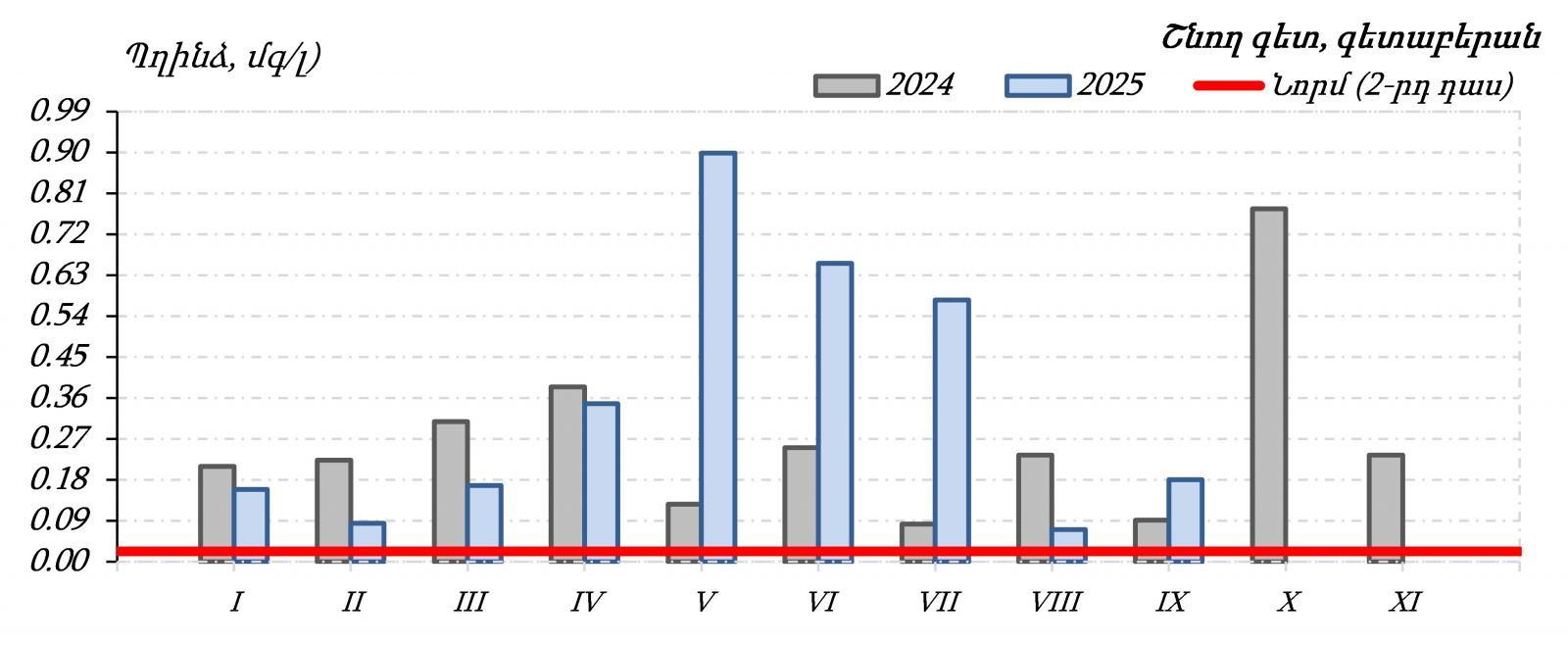 Մակերևութային ջրերի որակի 2025թ. սեպտեմբեր ամսվա մոնիթորինգի տվյալները տրված է ստորև.