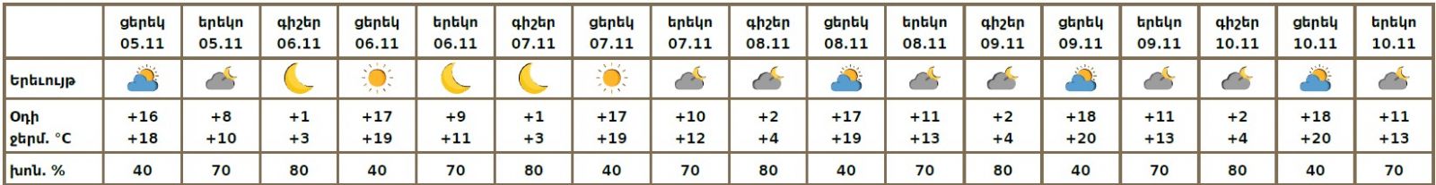 Նոյեմբերի 5-ի ցերեկը, նոյեմբերի 6-10-ին սպասվում է առանց տեղումների եղանակ։