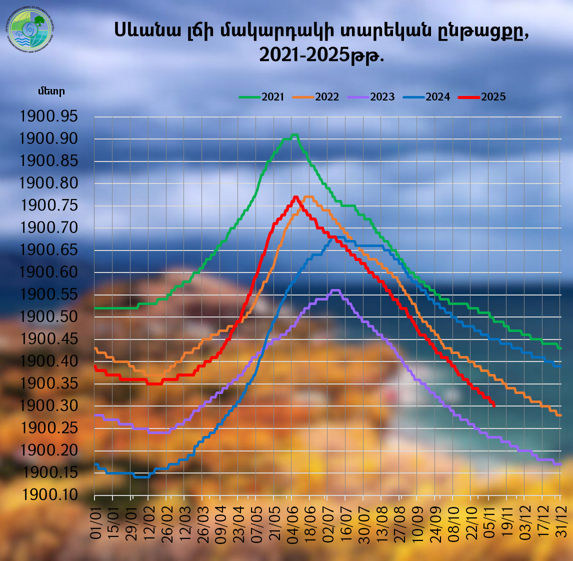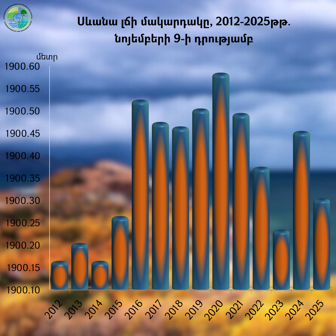 Սևանա լճի մակարդակը 2025 թվականի նոյեմբերի 3-9-ն ընկած ժամանակահատվածում իջել է 2 սմ-ով և կազմել՝ 1900.30 մ (09.11.25թ․), որն անցյալ տարվա նույն օրվա մակարդակից ցածր է 15 սմ-ով, իսկ 2025 թվականի հունվարի 1-ի մակարդակից` 9 սմ-ով։