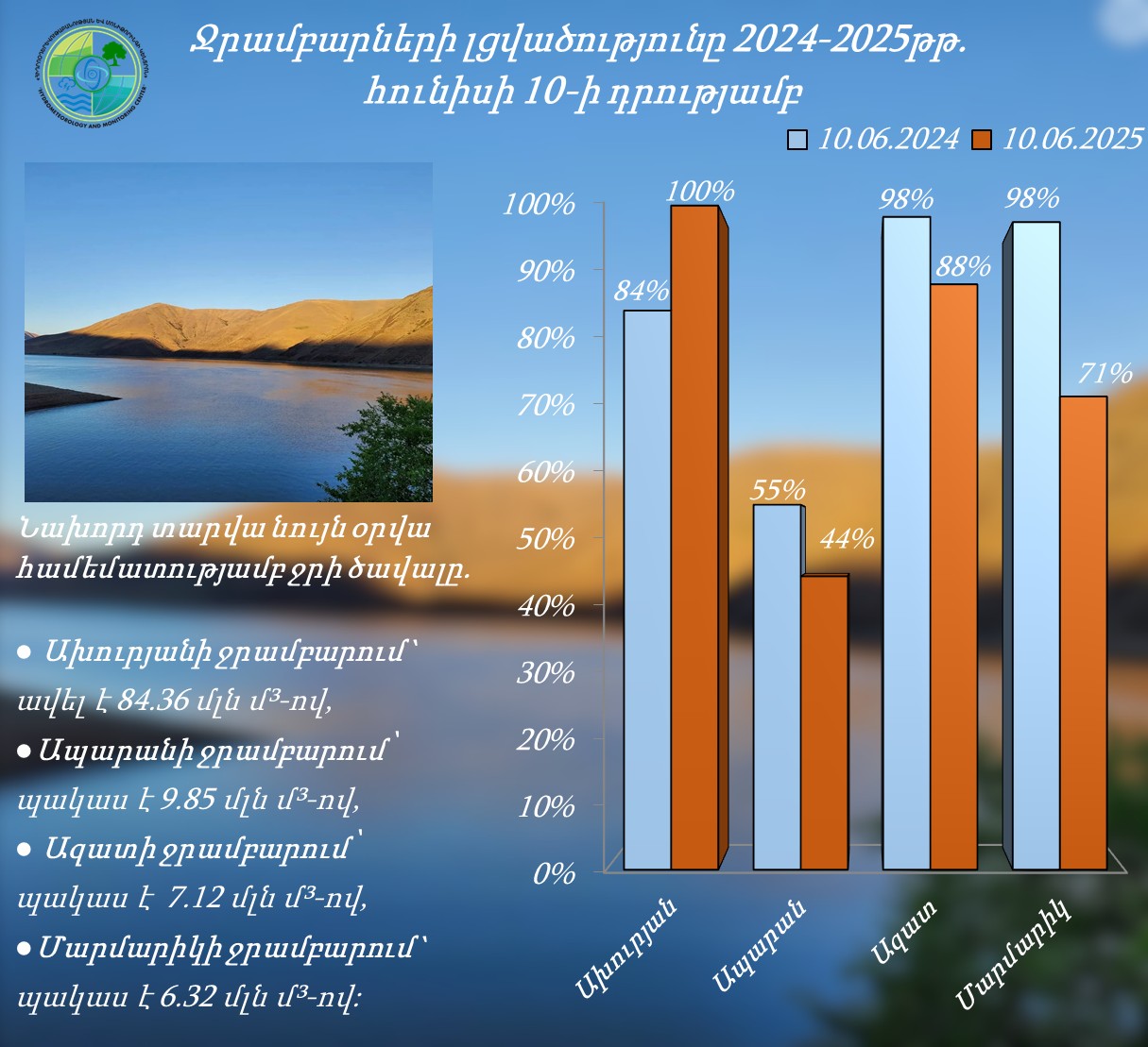 Ջրամբարների լցվածությունը հունիսի 10-ի դրությամբ (2025թ.)