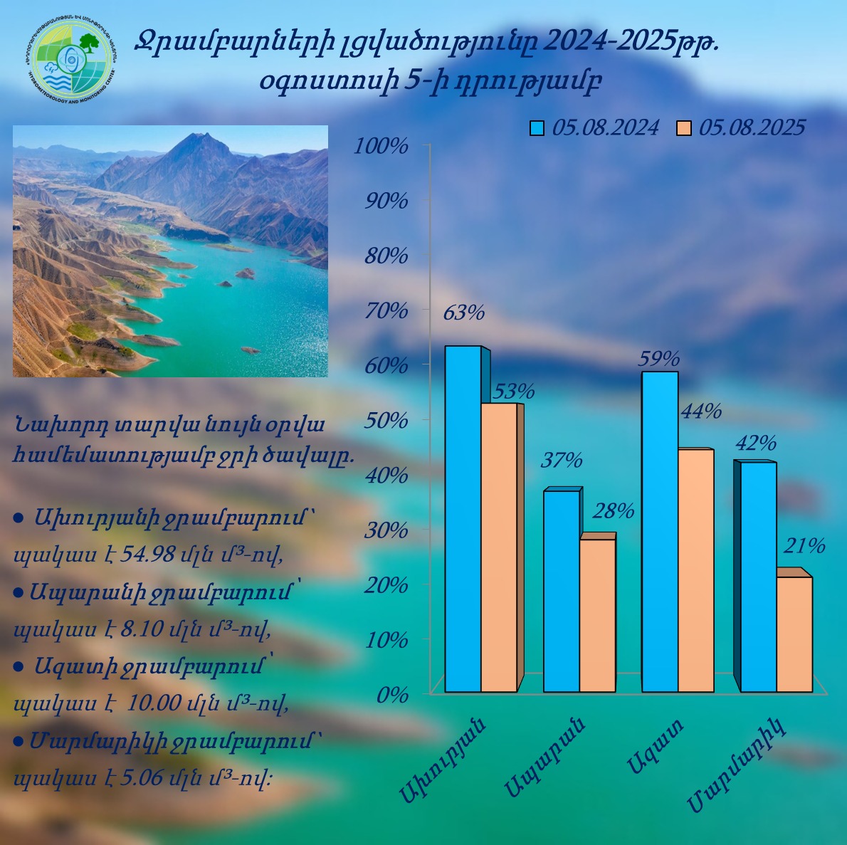 Ջրամբարների լցվածությունը օգոստոսի 5-ի դրությամբ (2025թ.)