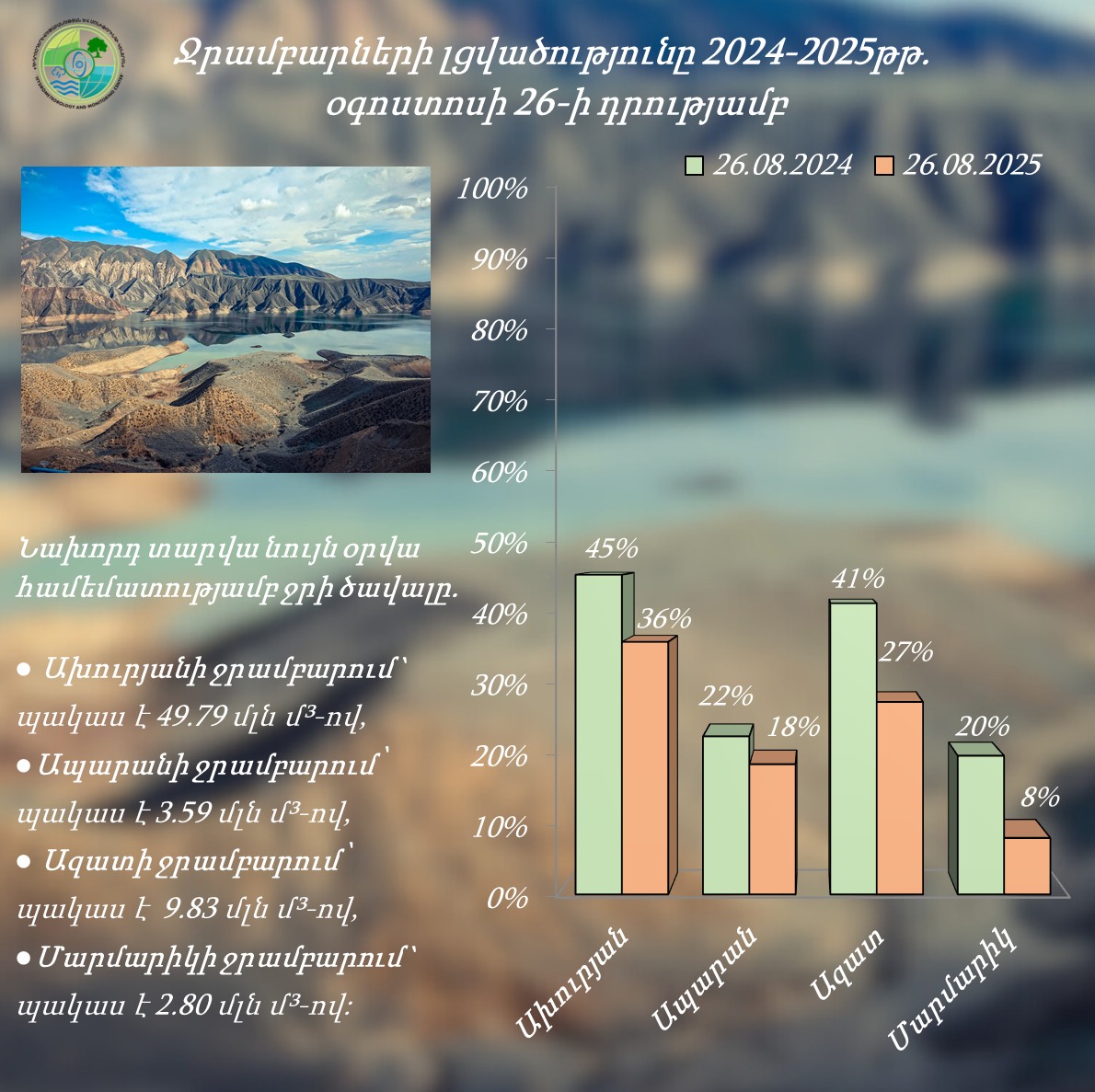 Ջրամբարների լցվածությունը օգոստոսի 26-ի դրությամբ (2025թ.)