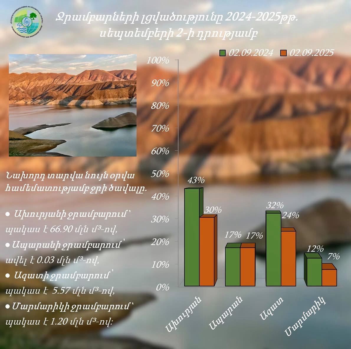 Ջրամբարների լցվածությունը սեպտեմբորի 2-ի դրությամբ (2025թ.)